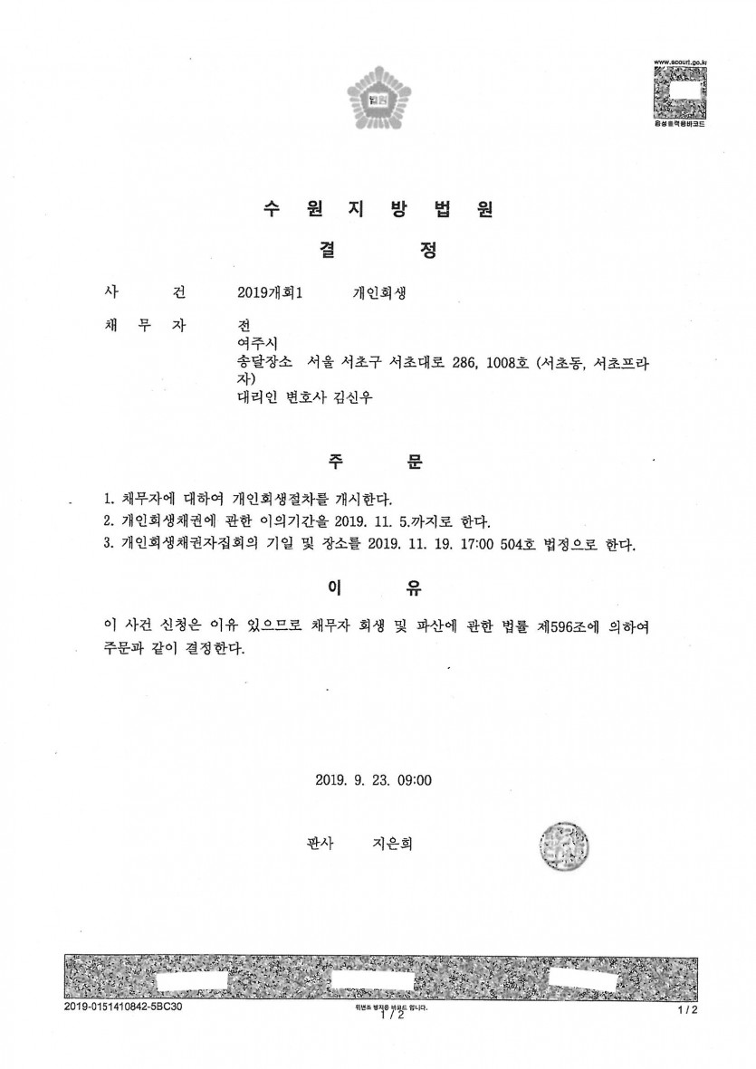 2. 접수 법원: 수원지방법원