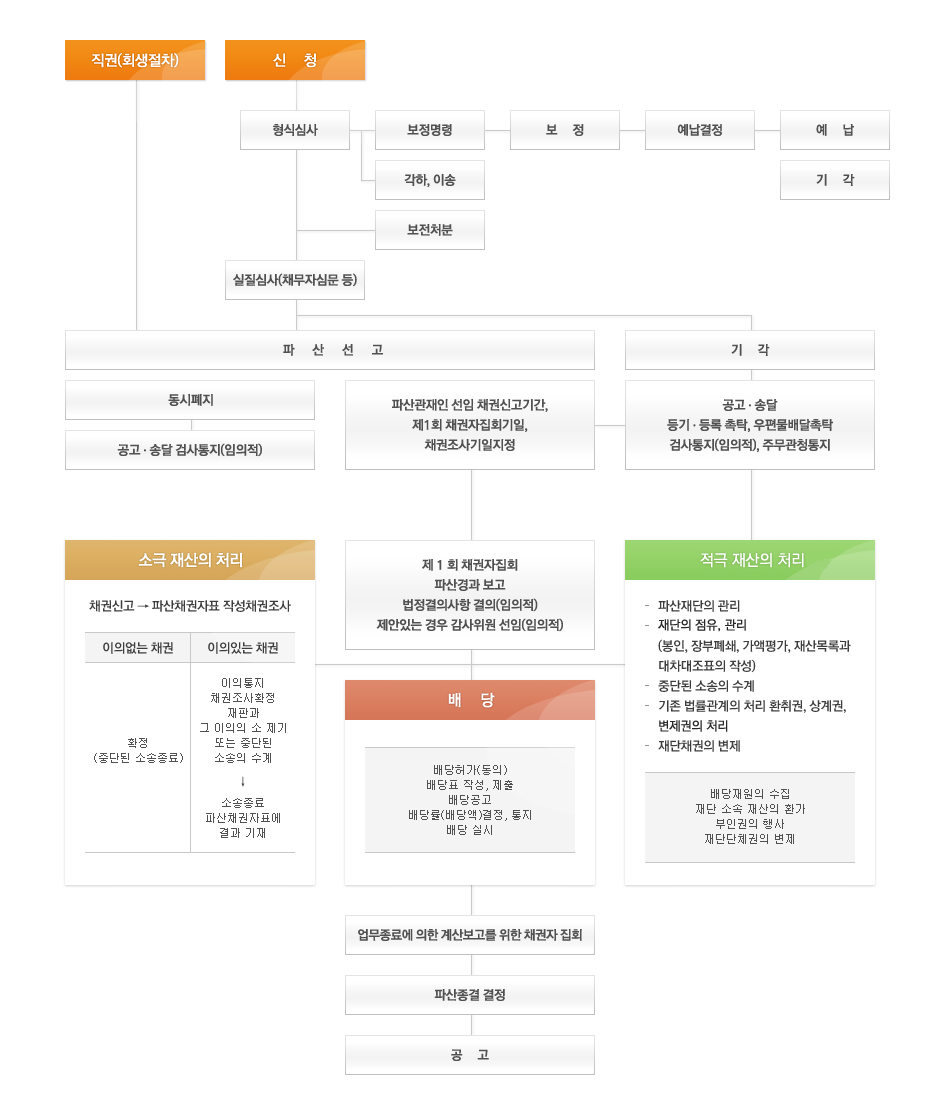 • 파산절차는 채무자에게 파산의 원인이 있을 때 파산선고를 하고 채권조사 절차를 통하여 채권자의 권리를 확정한 다음, 채무자의 재산을 환가하여 권리의 우선순위와 채권액에 따라 환가된 금원을 분배하는 과정이다.
